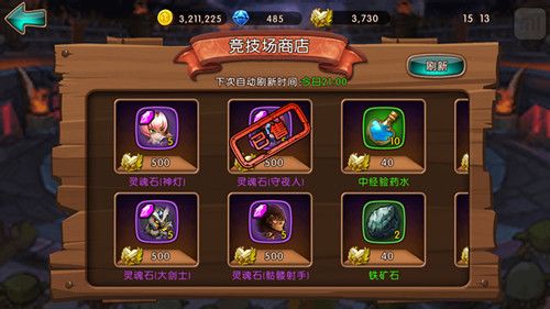用宝贵的竞技场币购买经验药水或者装备真的是太浪费了。相比于刷精英副本,在商店中购买灵魂石无疑要快不少。如果钻石抽卡没有出现特别好的英雄选择,挑选其中1到2个培养是比较好的哦!